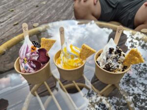 それから男3人で森の中にある可愛いカフェでソフトクリームを食べ、